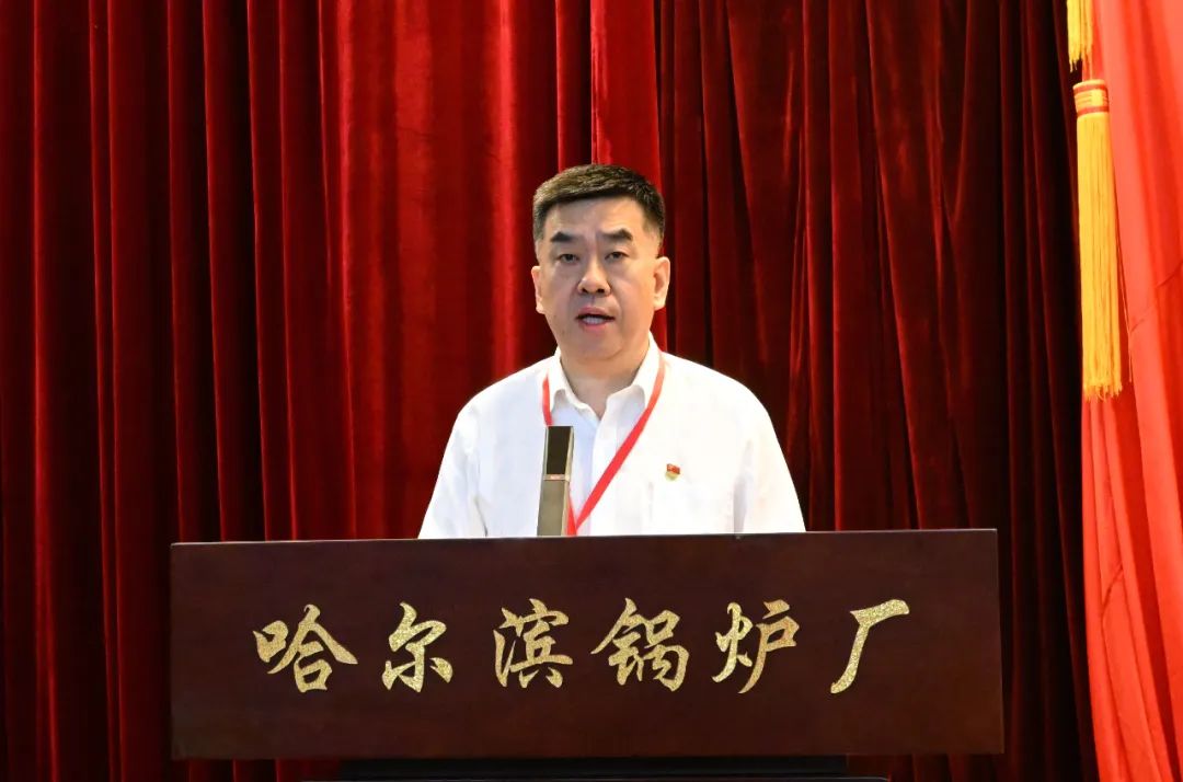 于龍同志代表哈鍋第十一屆委員會向大會作了題為《強(qiáng)化黨建引領(lǐng) 凝聚奮進(jìn)力量 為開創(chuàng)公司高質(zhì)量發(fā)展新局面而不懈奮斗》的報(bào)告。