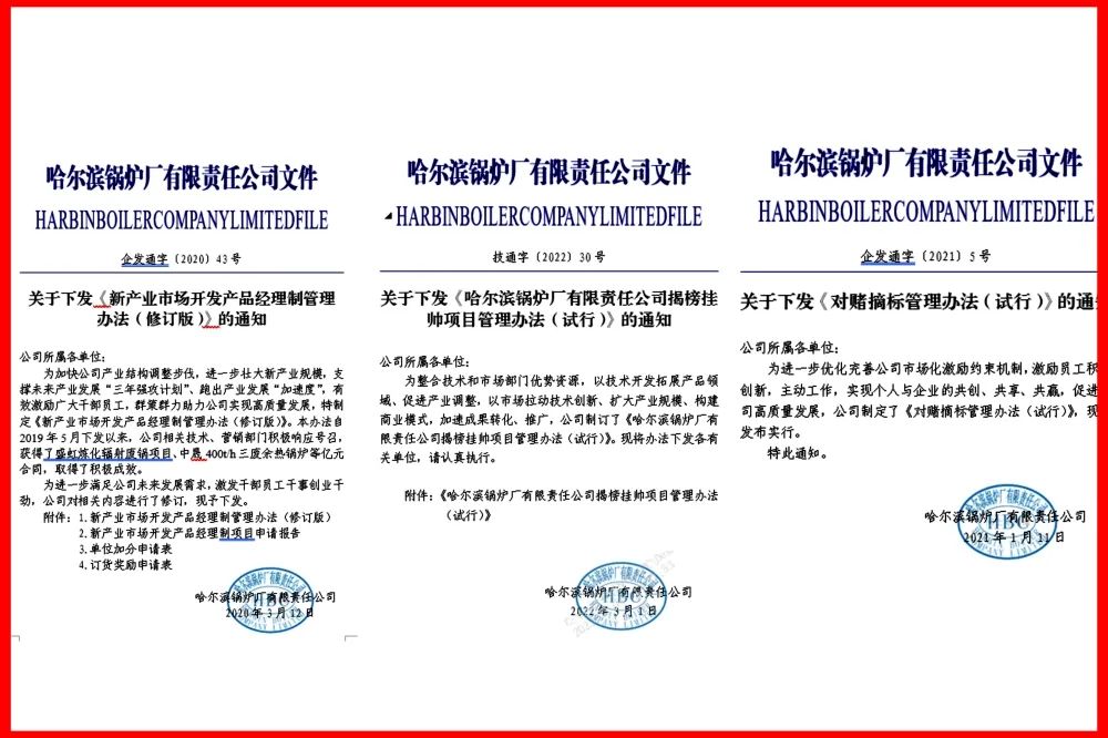 哈電鍋爐全面強化董事會建設,設立董事會辦公室,聘任董事會秘書,成立董事會提名、戰略、薪酬、審計與風險委員會,落實董事會職權工作方案及11項配套制度,充分發揮了董事會定戰略、作決策、防風險作用。對公司本部及4戶子公司19名經理層成員實施經理層成員任期制和契約化管理,建立了以契約為核心的激勵約束機制,確保經理層謀經營、抓落實、強管理作用發揮。因地制宜進行體制機制創新,相繼實施了新產業市場開發產品經理制、對賭摘標、揭榜掛帥等機制。在機制的激勵作用下,實現了29個市場訂單16.6億元合同金額的效益增量。優化資源配置,實施機構精簡和部門“去機關化”,縮減機構數量28%。結合企業實際,設立工程設計中心、新技術研究所、新產業運營部、市場營銷中心等部門,更好地支撐企業發展。