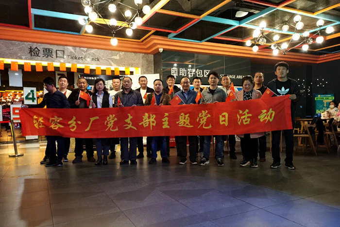 輕容分廠黨支部組織黨員、入黨積極分子開展主題黨日活動,觀看愛國主義影片。