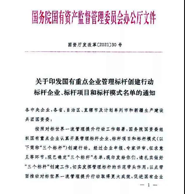 據悉,國務院國資委開展“三個標桿”創建行動,旨在推動對標世界一流管理提升行動取得更大成效,進一步發揮優秀企業示范帶動作用。本次標桿企業的遴選范圍是中央企業所屬企業、地方國有重點企業及所屬企業中經營狀況良好、管理成效突出、管理特點鮮明、管理信息化水平高的企業。