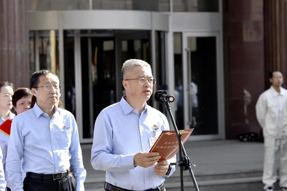 于龍在致辭中指出,69載歲月如歌、69載波瀾壯闊。69年前,來自五湖四海的老一輩哈鍋創業者們不怕苦、不畏難,以發展民族工業為己任,以戰天斗地的壯志豪情,踏上了荒涼寂靜的跑馬場,開創了中國電站鍋爐自主制造的先河。69年來,一代代哈鍋人同舟共濟、披荊斬棘,牢牢把握發展機遇、勇毅迎接困難挑戰,為我國經濟建設和社會發展作出了突出貢獻,譜寫了中國發電設備制造業波瀾壯闊的發展篇章。回顧哈鍋69年光輝發展歷程,無數國產首臺、行業之最誕生于此,哈鍋研發的高效清潔燃煤發電等技術世界領先,改革發展業績喜人。黨的二十大勝利召開吹響了奮進新時代新征程的號角,哈鍋也邁上了轉型升級高質量發展的新階段。放眼未來,哈鍋將深入學習貫徹習近平新時代中國特色社會主義思想和黨的二十大精神,落實哈電集團“三步走”工作安排,以“1346”戰略為引領,加快構建“雙系統、雙支柱”的經營發展格局,以更加堅定的信念、更加昂揚的斗志、更加扎實的作風,向著中國最好、世界一流的目標砥礪前行,再譜華章、再鑄豐碑、再創輝煌!