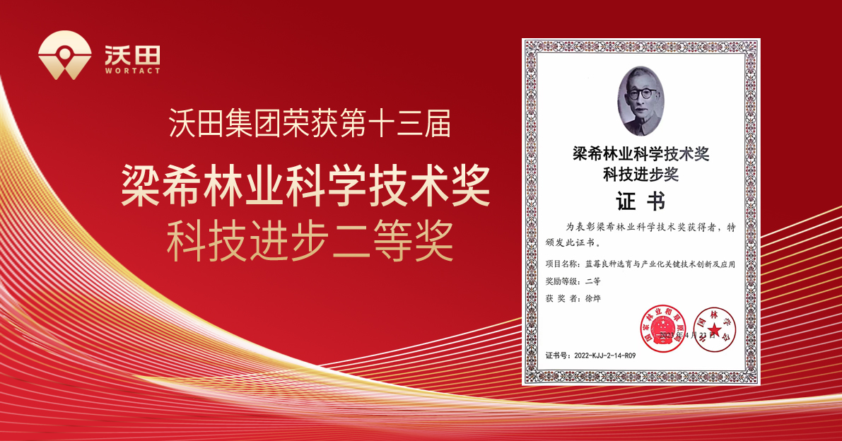 近日,根據(jù)中國林學會《關于第十三屆梁希林業(yè)科學技術獎評選結果的通報》(中林會學字〔2023〕23號),沃田集團《藍莓良種選育與產業(yè)化關鍵技術創(chuàng)新及應用》項目,榮獲第十三屆梁希林業(yè)科學技術獎科技進步二等獎。